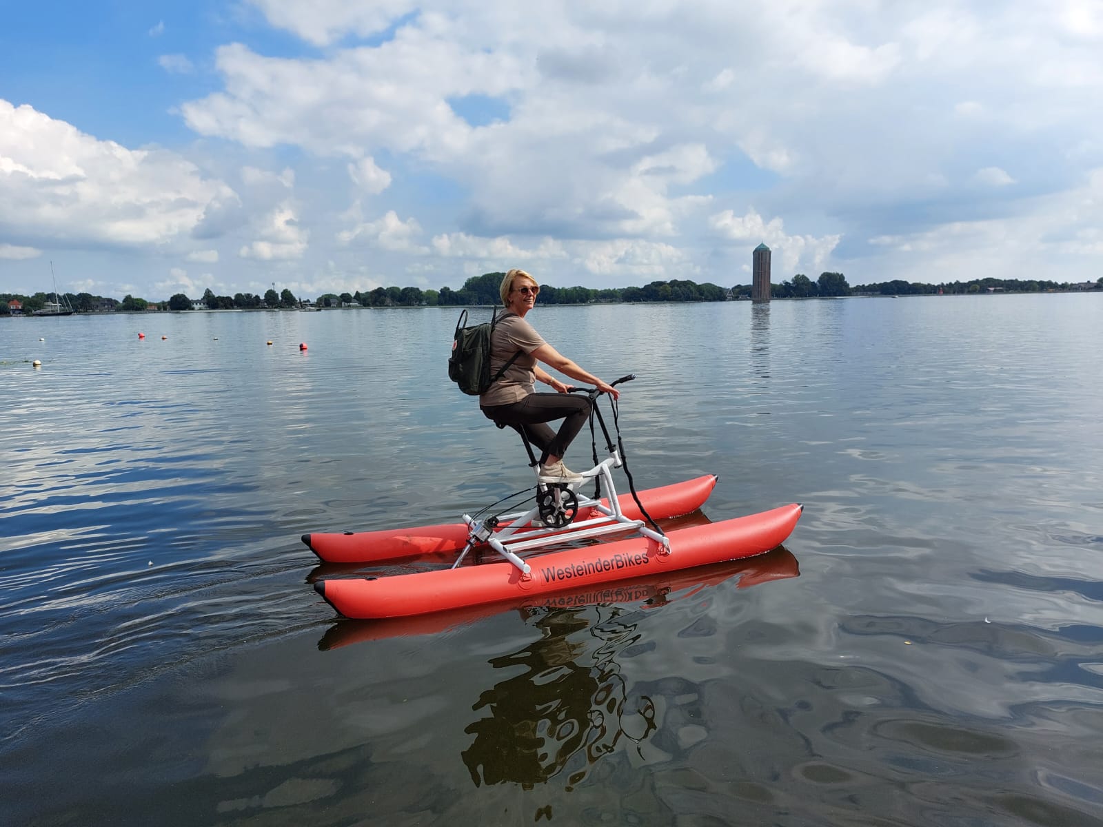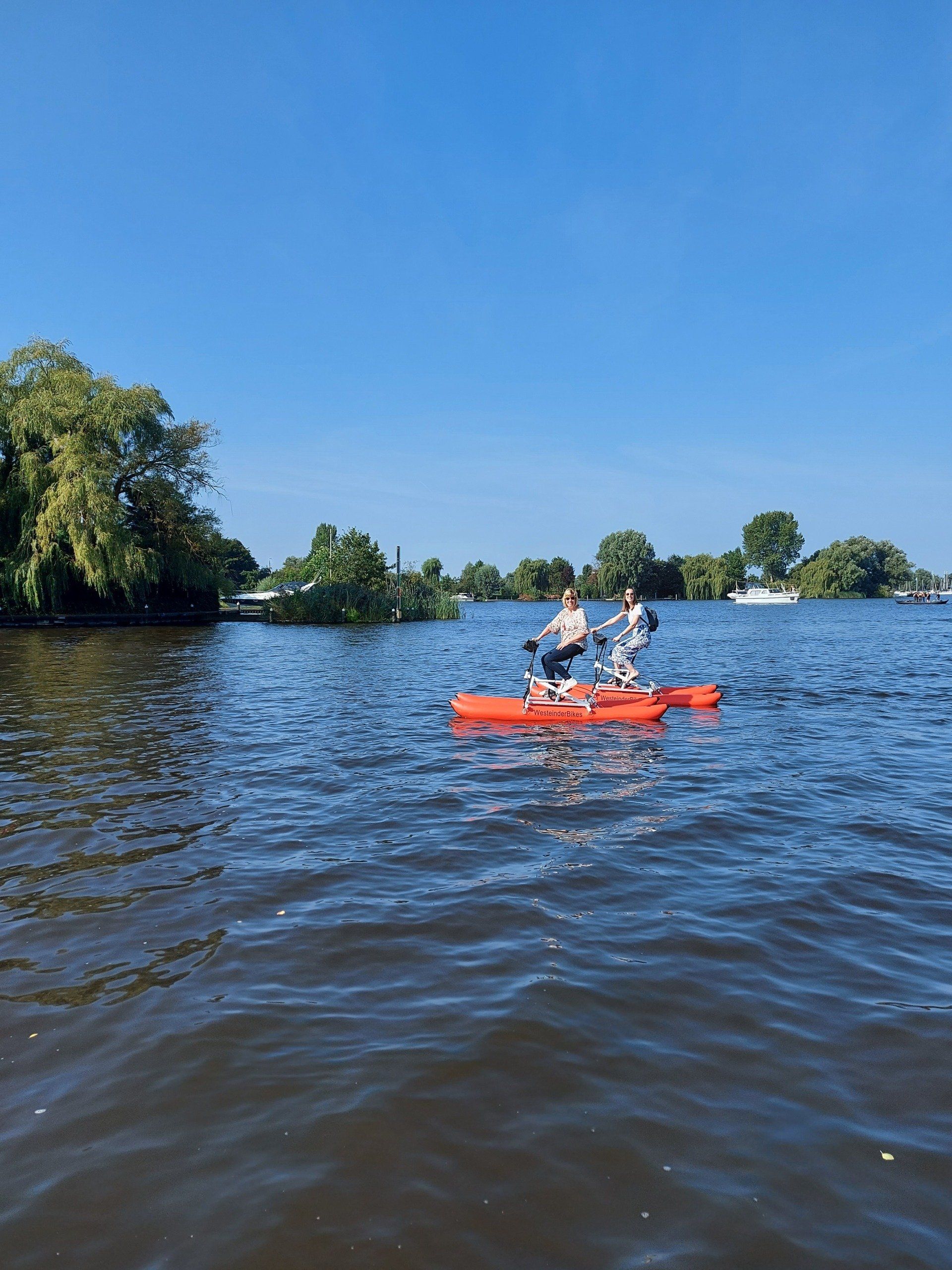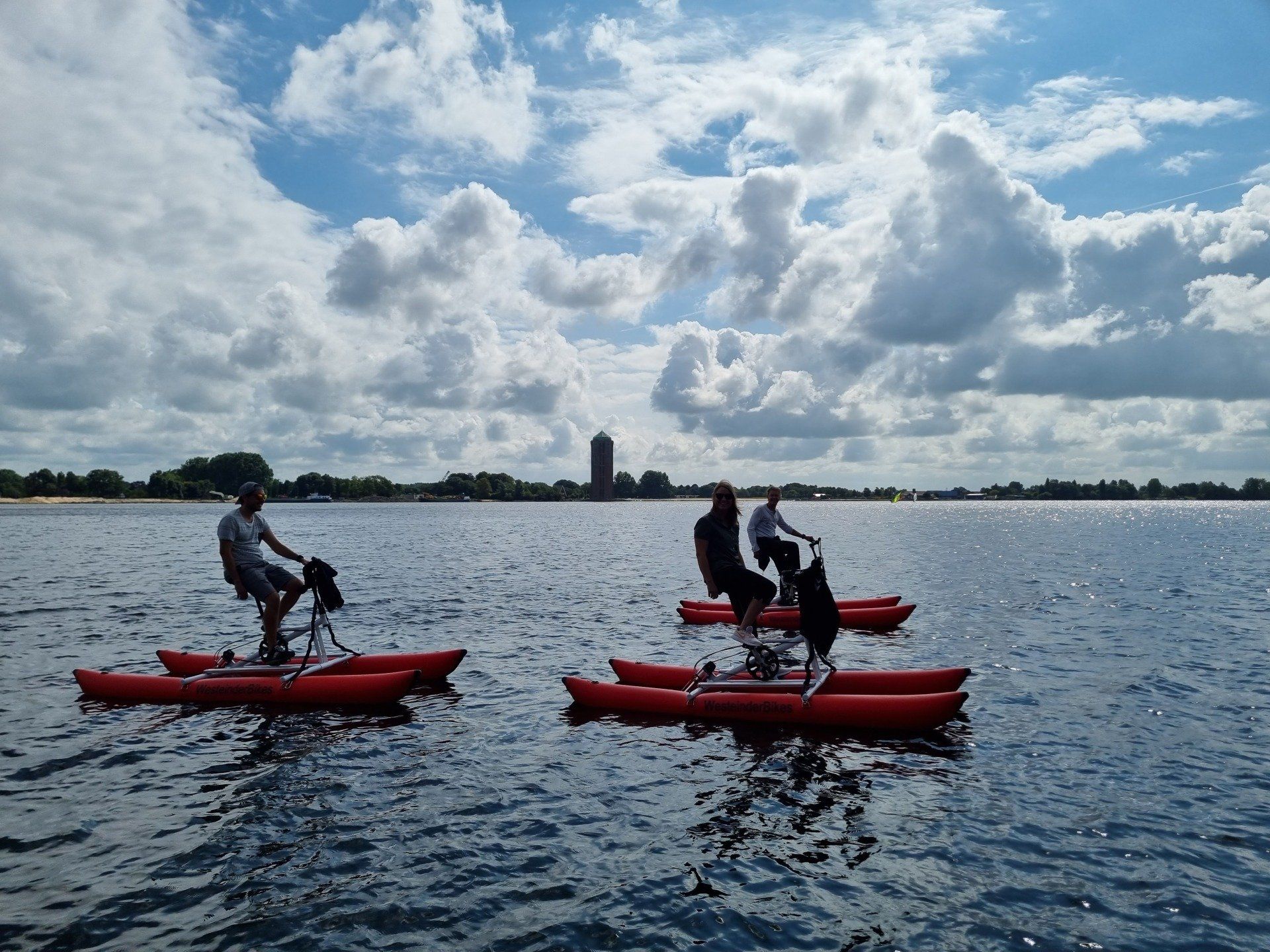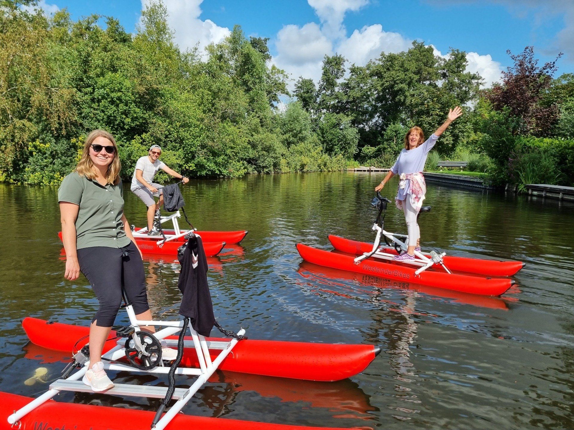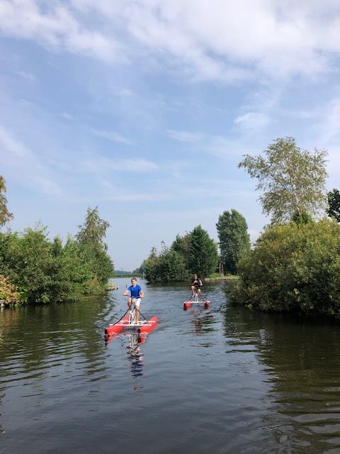 Onderstaande foto's zijn genomen tijdens het waterfietsen zodat je een impressie hebt van onze tochten en gezelligheid tijdens het fietsen!