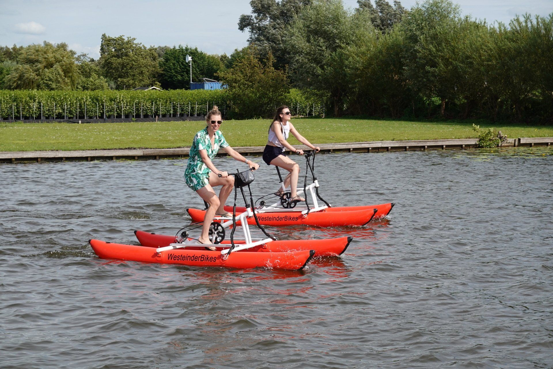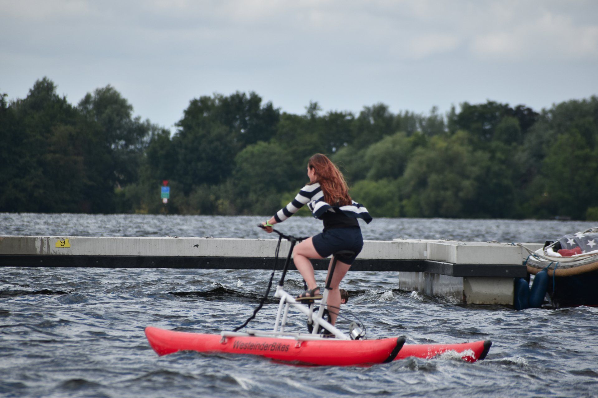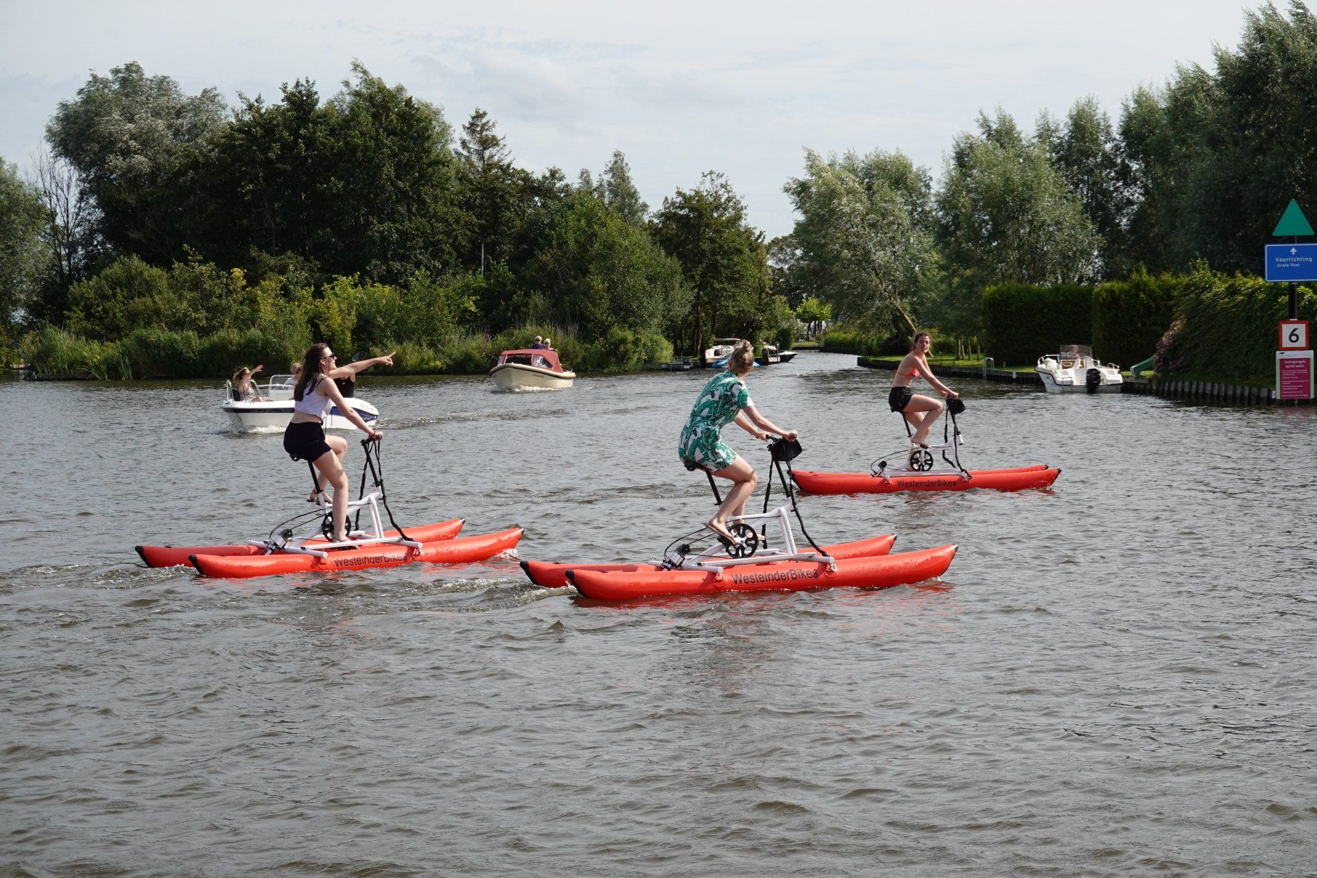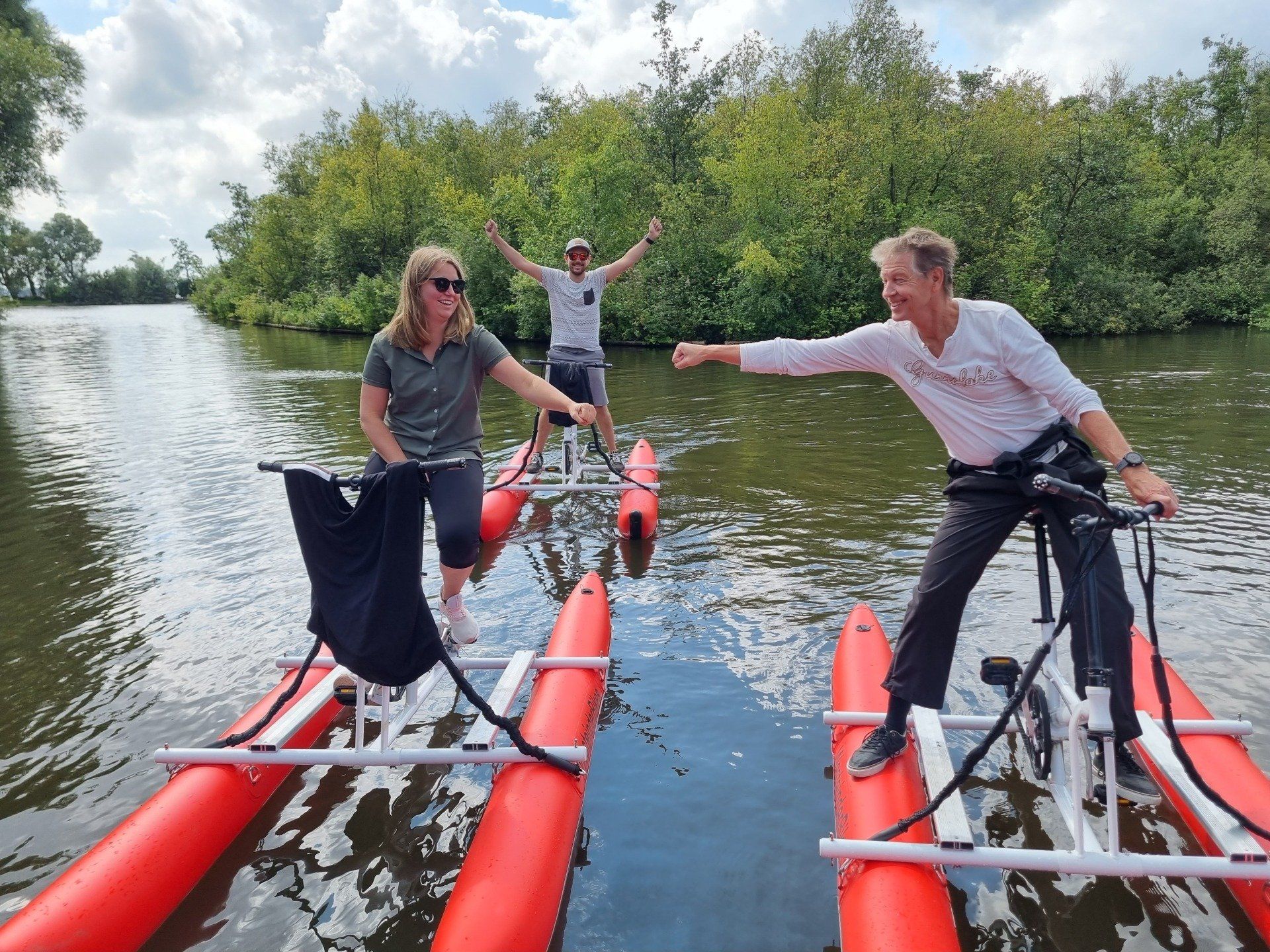 Onderstaande foto's zijn genomen tijdens het waterfietsen zodat je een impressie hebt van onze tochten en gezelligheid tijdens het fietsen!