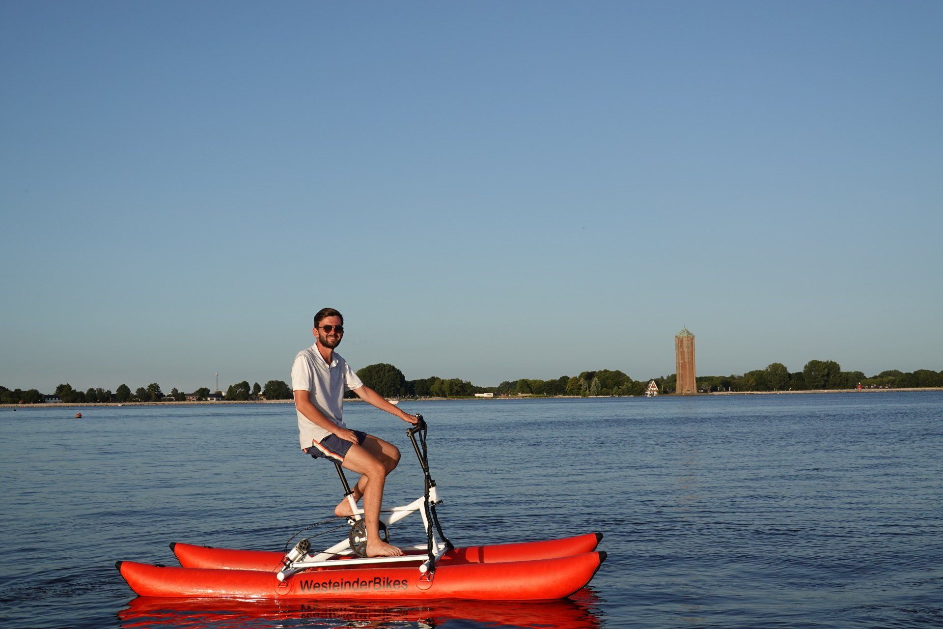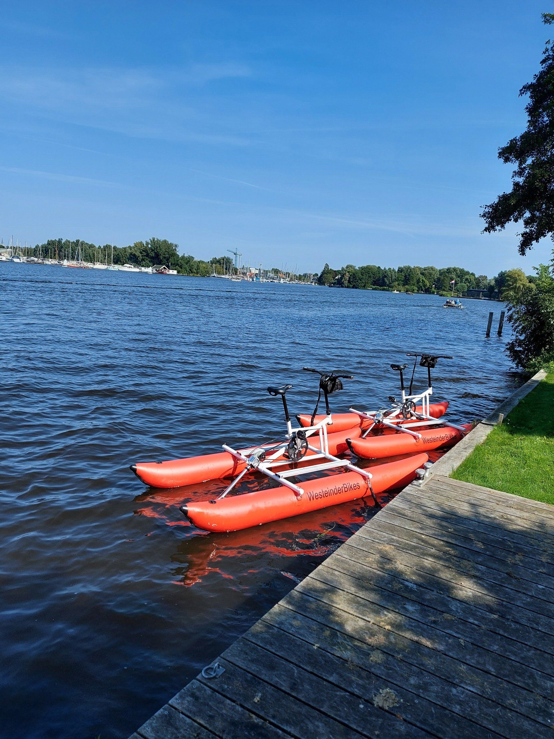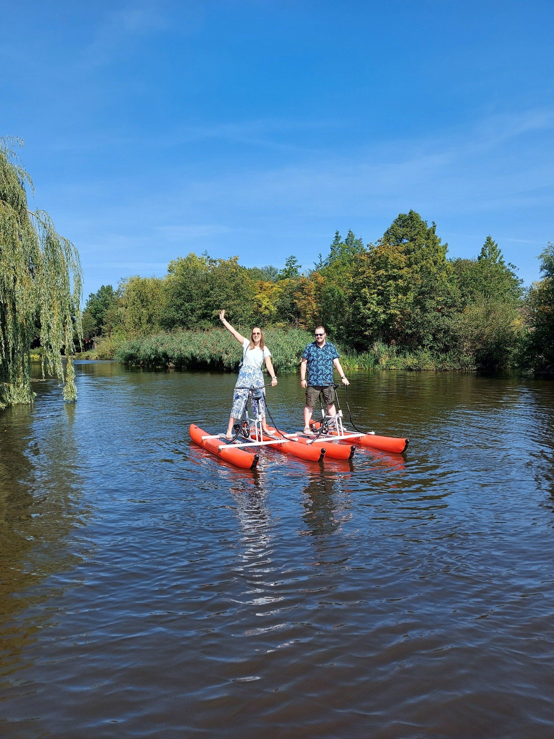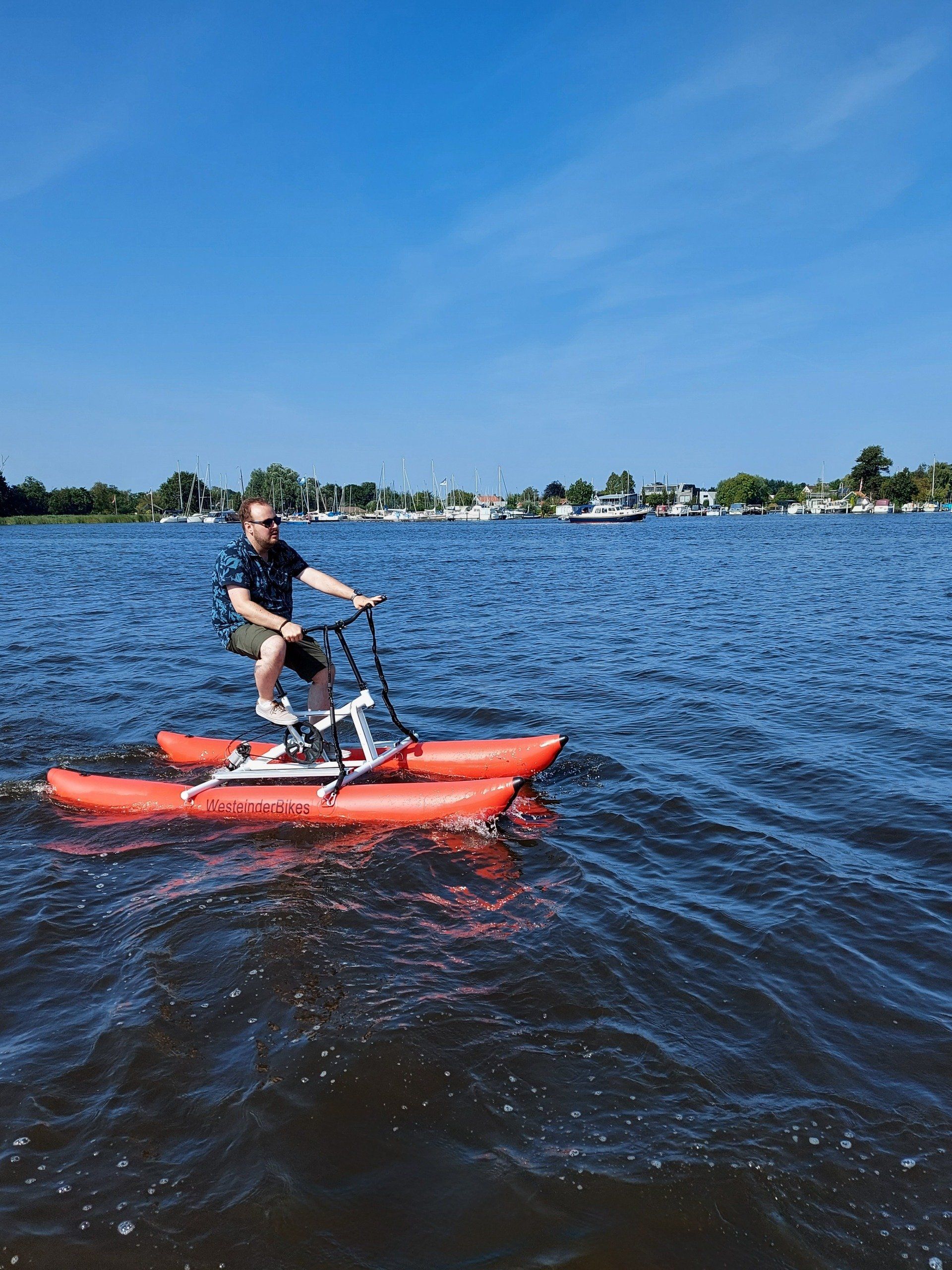 Onderstaande foto's zijn genomen tijdens het waterfietsen zodat je een impressie hebt van onze tochten en gezelligheid tijdens het fietsen!